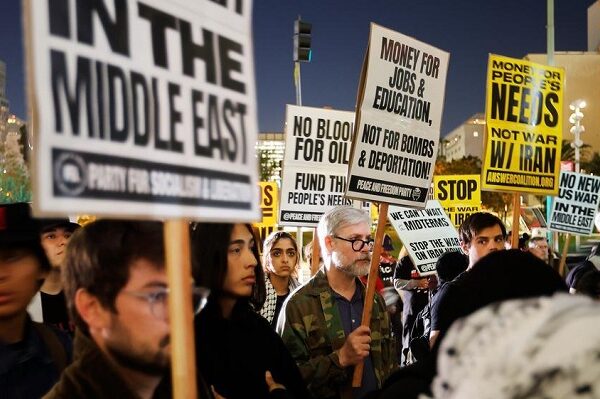 People protest against U.S. military attack on Iran in Los Angeles, the United States, on March 2, 2026.…