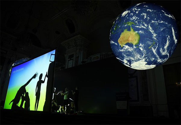 This photo taken on April 9, 2026 shows an art performance at the International Vienna Energy and Climate Forum in Vienna, Austria. Under the theme “Powering Prosperity, Security and Stability,” the International Vienna Energy and Climate Forum 2026 opened here on Thursday. (Xinhua/He Canling)