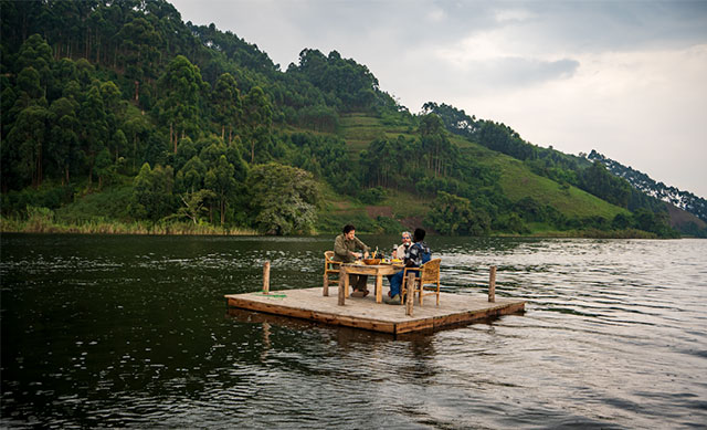 Guests of Kisoro Art Island enjoy their dinner while taking in the scenery of Lake Mutanda. ALL PHOTOS/COURTESY/KISORO ART ISLAND.