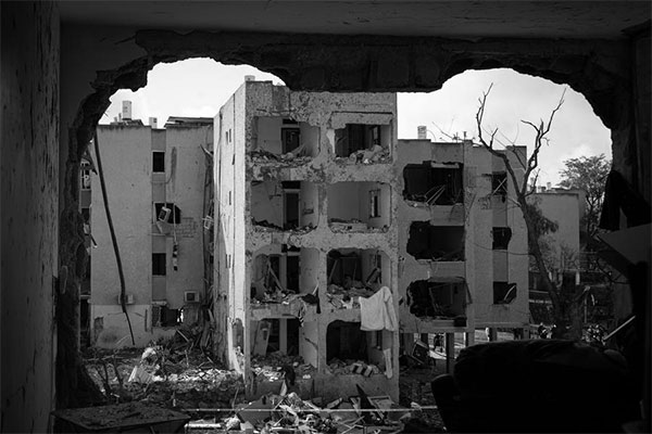 This photo taken on March 22, 2026 shows debris of a building damaged after a missile strike in Arad, Israel. (Xinhua/Chen Junqing)